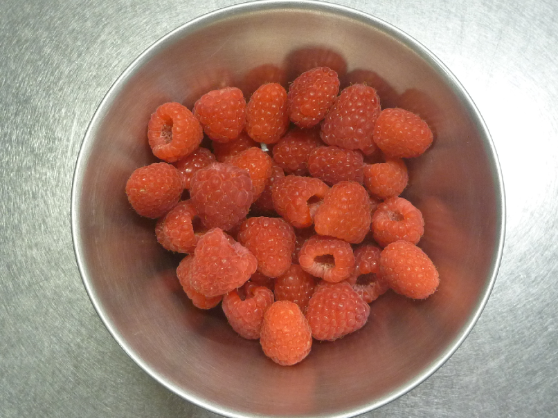 2. 산딸기를 볼이나 체에 받친 다음 흐르는 물에 헹궈 불순물을 제거합니다. 이때 곰팡이 피거나 무른 산딸기는 골라내서 버리도록 합니다.